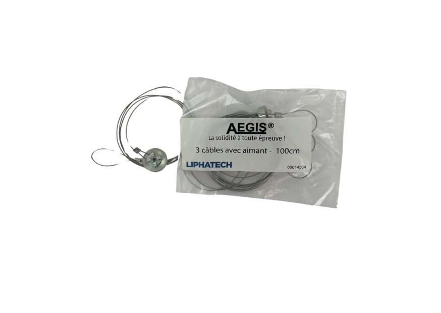 Nouveau câble de fixation aimanté AEGIS® de 100 cm conçu en néodyme antirouille. Son puissant aimant assure une fixation sûre, sans trace et très pratique. Peut-être réutilisé autant que nécessaire sur tous types de supports métalliques : bardage, pilier..